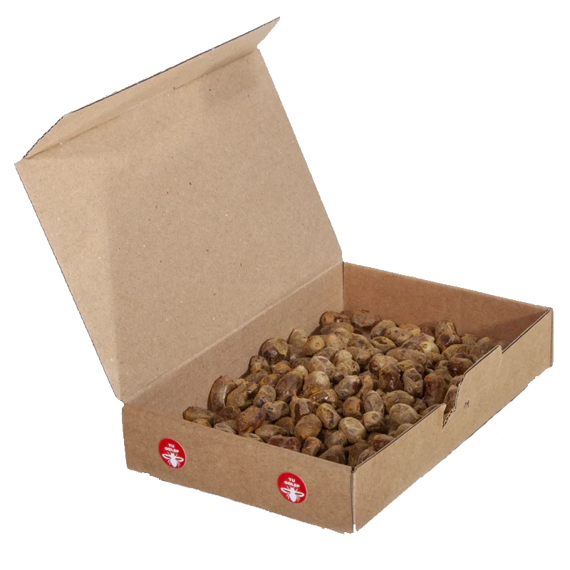 Caja de 60 capullos (aproximadamente 20 hembras y 40 machos), lista para colocarse en el hotel o caja de incubación.